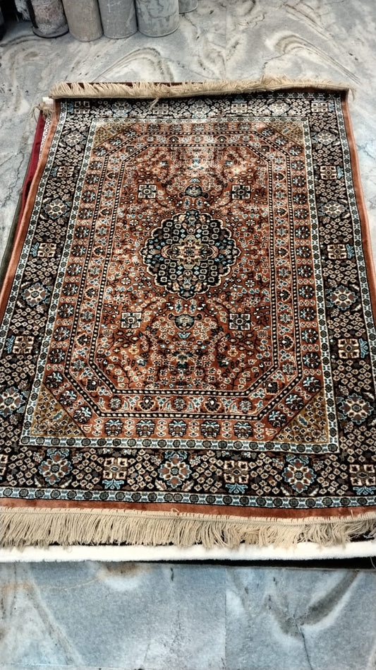 Traditional silk persian design carpets rust colour 4ft x 6 ft rust colour soft shining